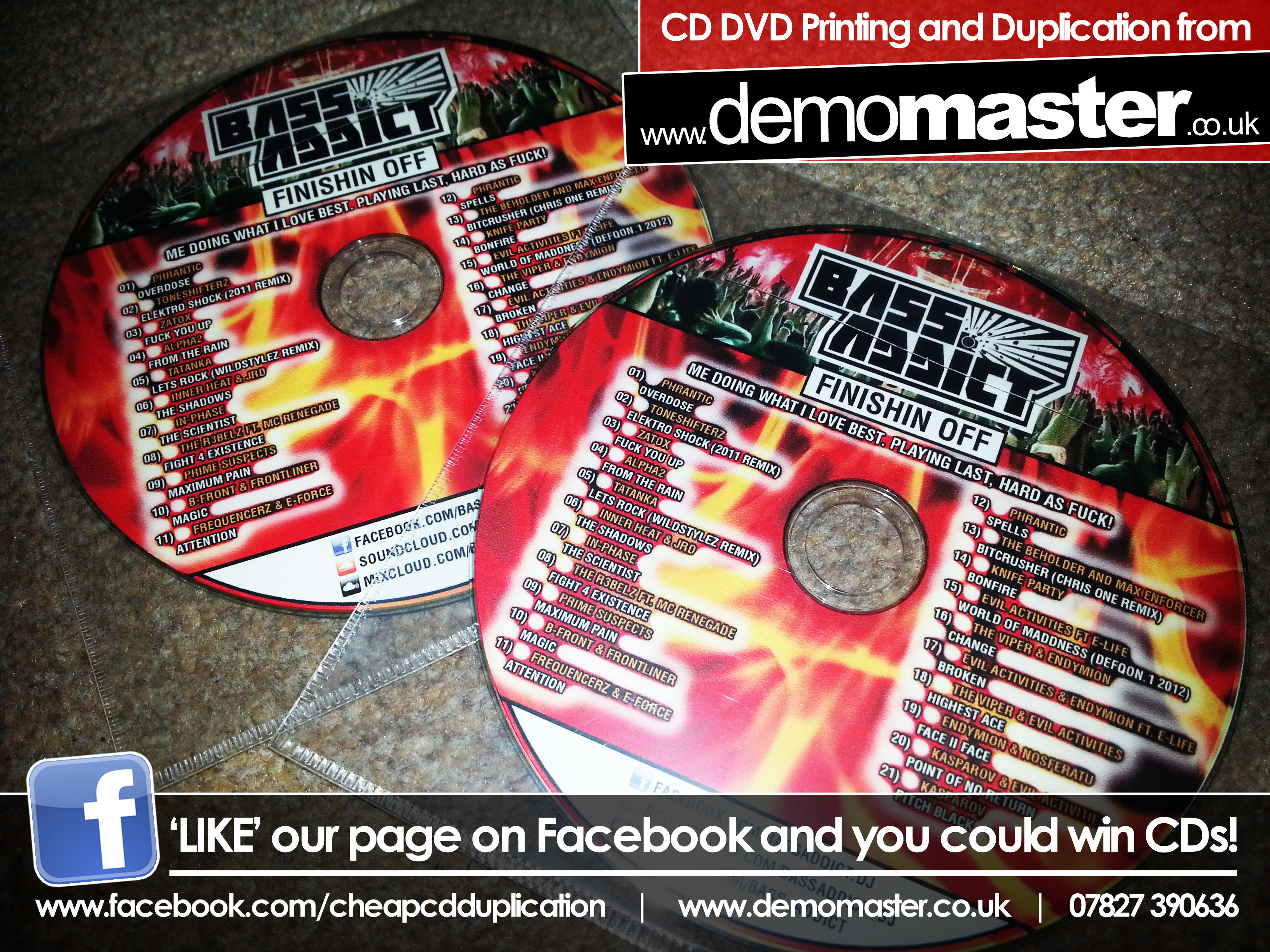 Remember to ‘LIKE’ the Facebook page to enter your name for FREE CDs. Prize draw every time we add 500 ‘LIKES’ at www.facebook.com/cheapcdduplication