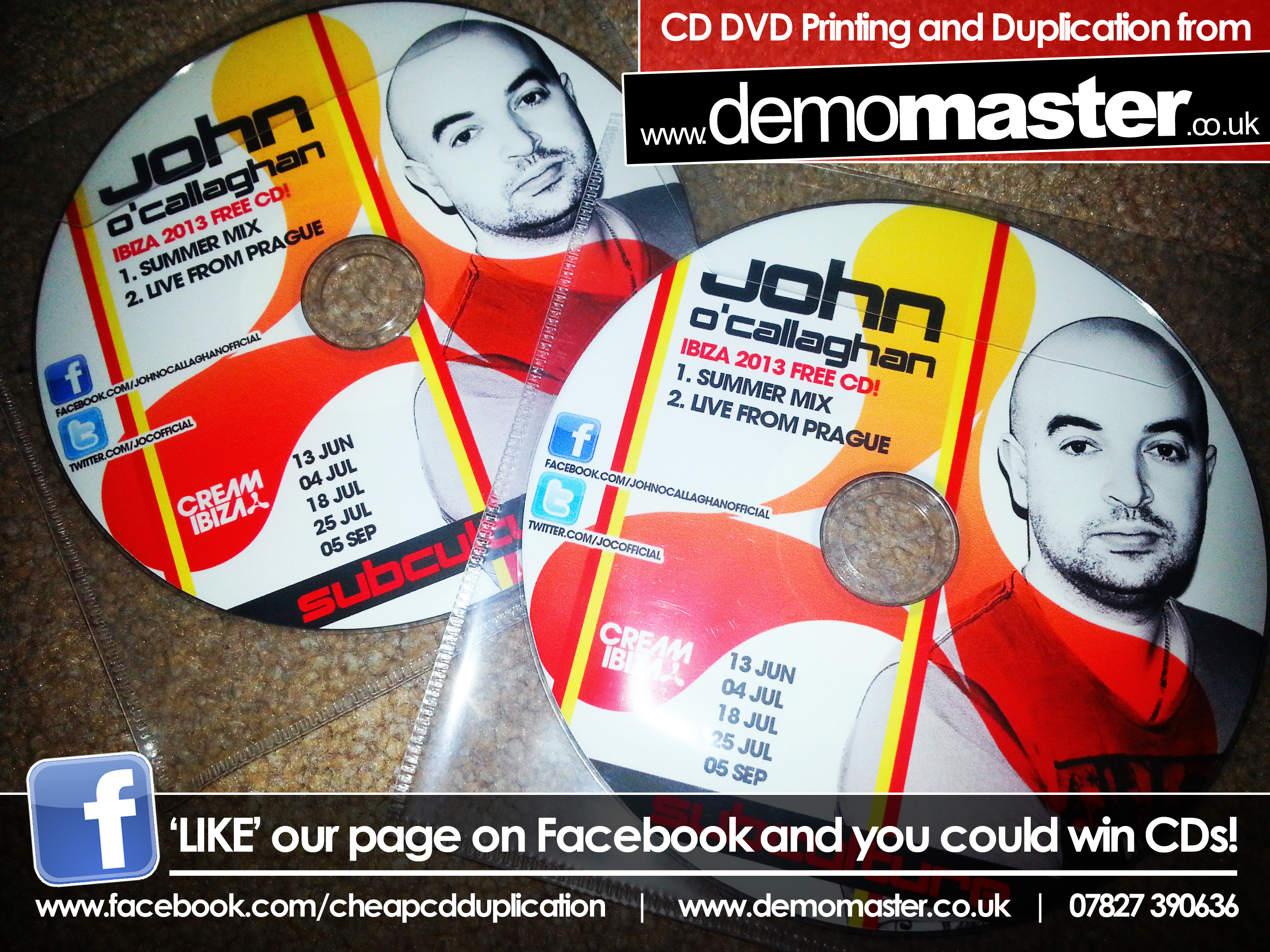 Remember to ‘LIKE’ the Facebook page to enter your name for FREE CDs. Prize draw every time we add 500 ‘LIKES’ at www.facebook.com/cheapcdduplication